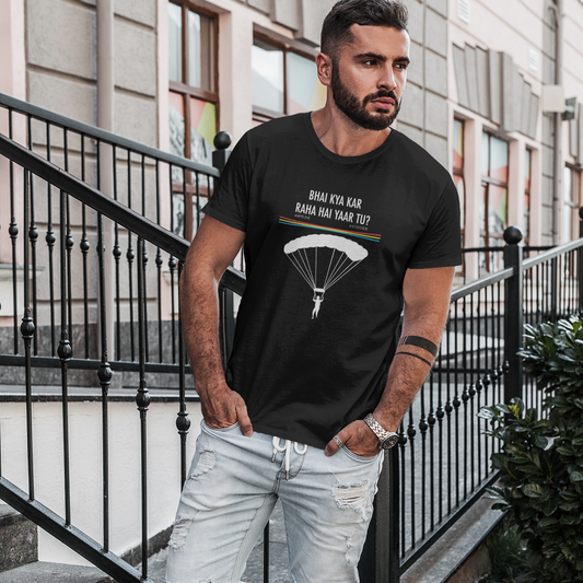 Sippline Digital Print Unisex Cotton T-Shirt 30 Bhai Kya Kar Raha Hai Yar Tu Shark Tank Sky Dive - Diver Parachute