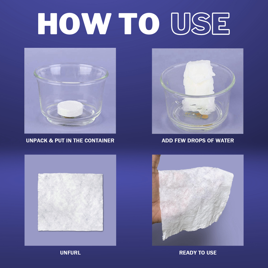 • Easy to use. Add a few drops of water to unfurl clean soft and soothing wet tissues.