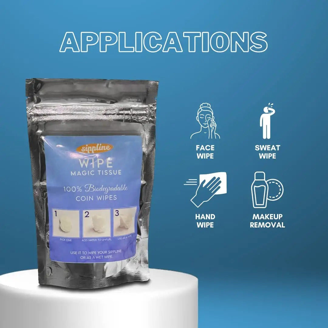 Sippline Magic Compressed Disposable Towel Tablet Capsules Coin Cloth Wipes Paper Tissue Combo Pack of 2 ( 150 tissues)